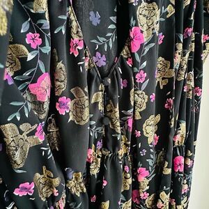 ZARA Metallic Shimmer Tie Neck Blouse Small Gold Floral Statement