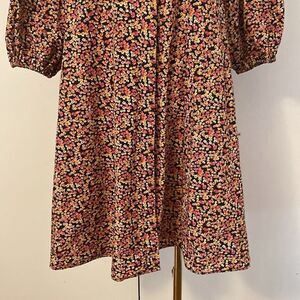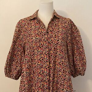 ZARA Micro Floral Print Balloon Sleeve Oversize Shirt Dress Size XS