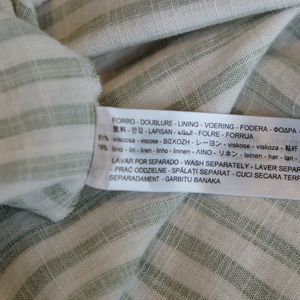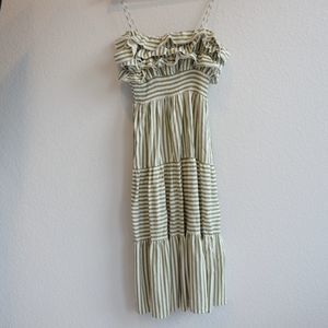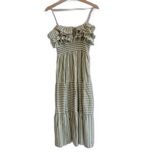 ZARA Midi Dress Linen Blend Striped Green Ruffles Tiered Sz S