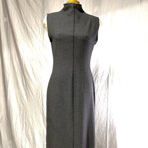 Beautiful column neck, invisible zip up the back. Looks like wool.