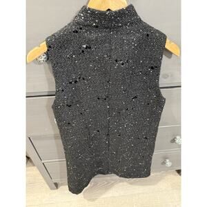 ZARA Midi Tweed Knit Sequins Dress with Rhinestones Buttons Black M Party NEW