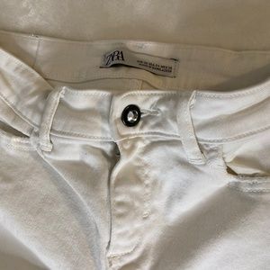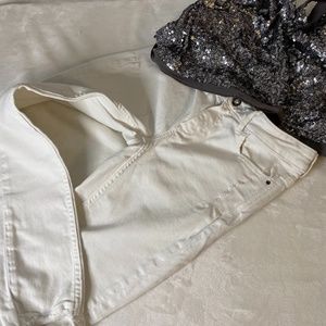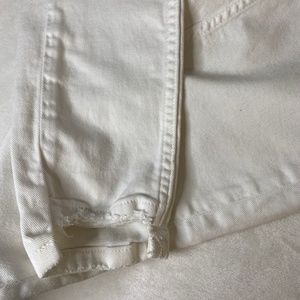 These white washed-effect jeans have five pockets, and an asymmetrical hem that's edgy and fun. The front is a button and zip enclosure. In great condition. Make an offer.