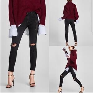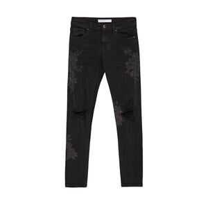 ZARA Midrise Skinny Jeans Denim Floral Ripped Detail Black Distressed Pants