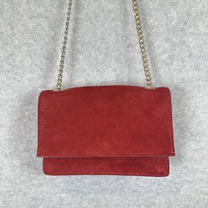 ZARA Mini Crossbody Bag Gold METAL CHAIN Strap FLAP RED Shoulder HandBag Velvet