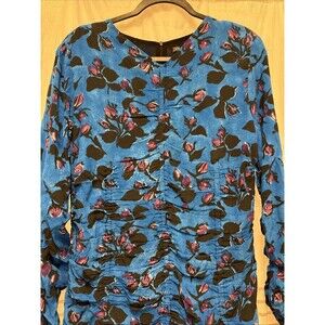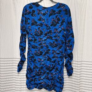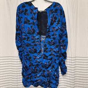 ZARA Mini Dress Womens Large Blue Floral Print Bodycone Long Sleeve NWT