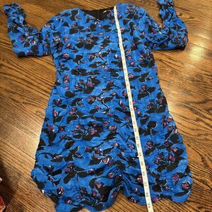 Make a statement with this beautiful blue floral print mini dress from ZARA. Perfect for party or formal occasions, this bodycon dress features a scoop neckline, long sleeves, and a zip closure. The dress is made of soft and stretchy viscose knit fabric, making it comfortable to wear and perfect for any season, summer, fall or spring.