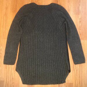 ZARA Mixed Media Faux Leather Knit Crochet Long Tunic Sweater Black Gray Medium
