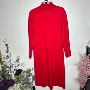 ZARA Mock High Neck Knit Midi Dress Red {YY42}
