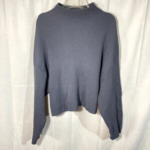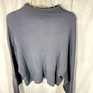 ZARA Mock Neck Ribbed Knit Cropped Sweater Pullover Blue Size Medium
