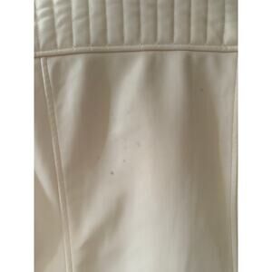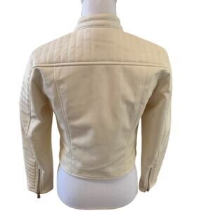 New ZARA Moto Faux Leather Biker Jacket in Off White, size S. Note there a a few small dark spots on the back of the jacket, see photos. This Edgy Moto jacket has the biker-inspired finishes, metal hardware & zippers and padded accents. This super soft jacket is 100% polyurethane and feels just like leather.