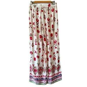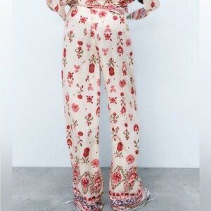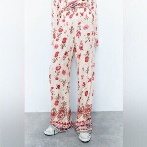 ZARA Multicolor Floral Lightweight Viscose Flowy Loose Fit Pants Size L NEW