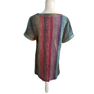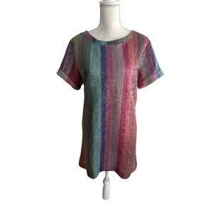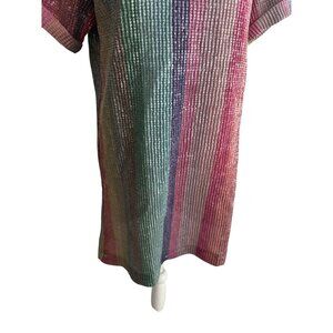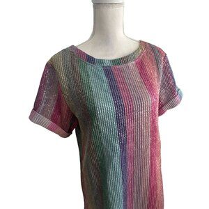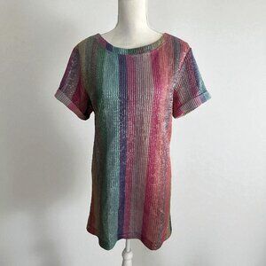 ZARA Multicolor Shimmer Striped Short Sleeve Shift Dress Size Small