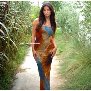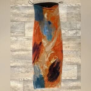 This ZARA Multicolor Strapless Fitted Midi Dress is a statement piece — crafted from lightweight stretch tulle with a bold multicolor painterly print. The strapless straight neckline and body-hugging silhouette create an ultra-modern, sculpted look that photographs beautifully. Fully lined for comfortable wear and perfect for vacations, dinners, or editorial-style photoshoots.