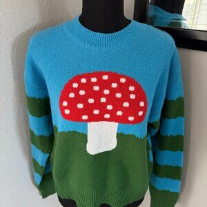 ZARA Mushroom Toadstool Blue Green Striped Check Sweater Medium
