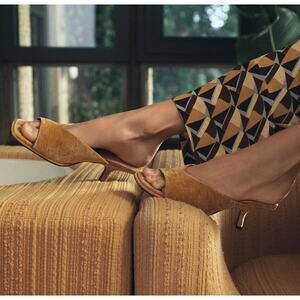 ZARA Mustard Velvet Asymmetrical Heeled Mules NWT Size 7.5