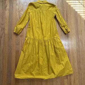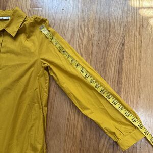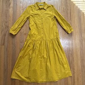 ZARA Mustard Yellow Poplin Midi Dress Women’s Small Button Front Long Sleeve Poc