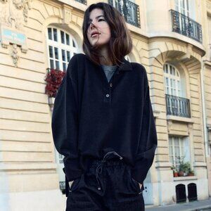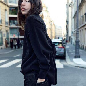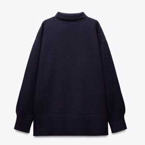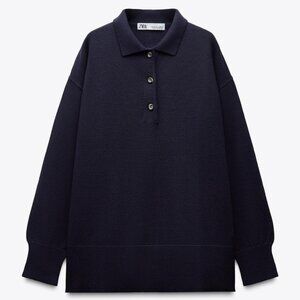 ZARA NAVY KNIT JERSEY POLO SWEATER SIZE SMALL