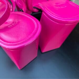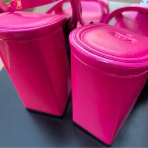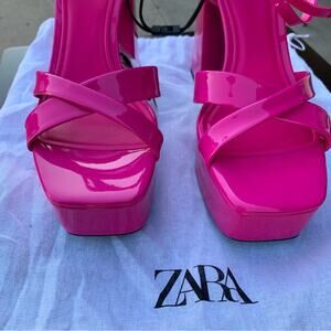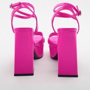 ZARA NEON PINK PATENT STRAPPY CHUNKY PLATFORM HEEL SANDALS SIZE 9