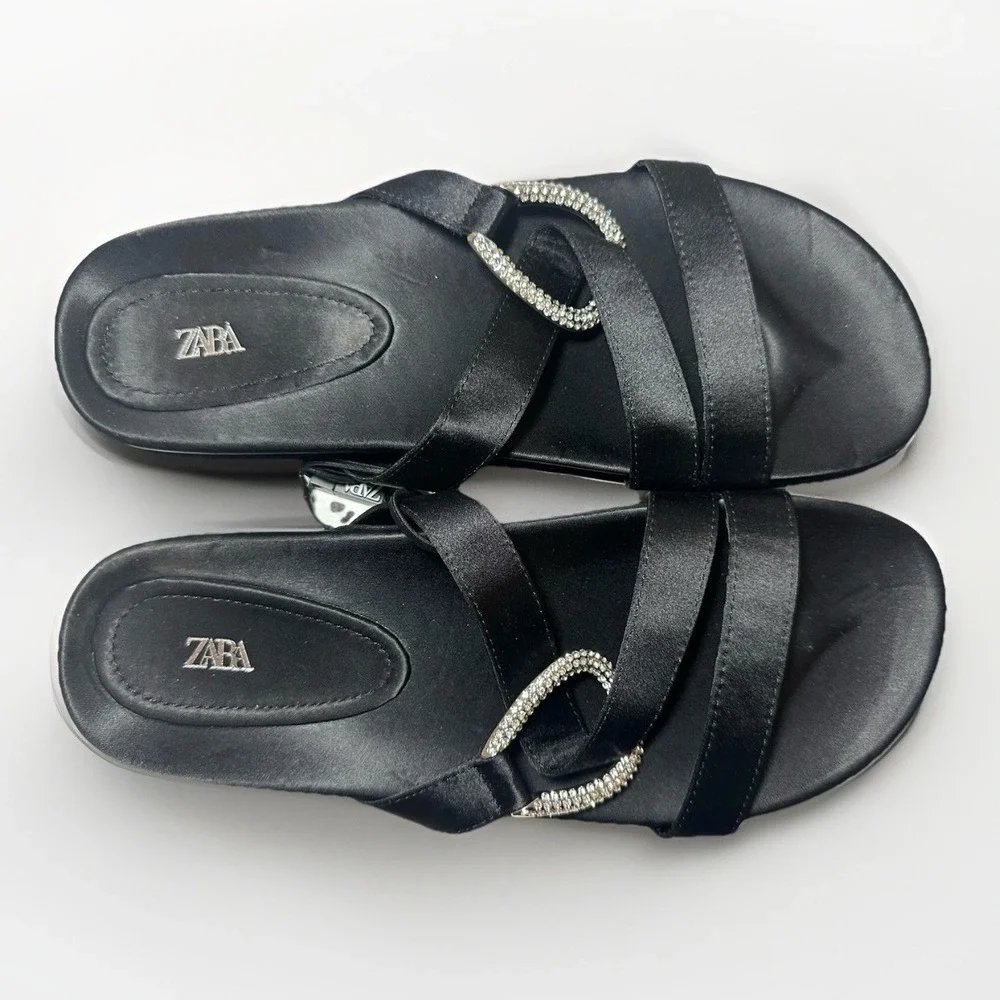 * The ZARA Black Satin Rhinestone Slides are a stylish and chic option for women in US size 8 and EU size 39.
