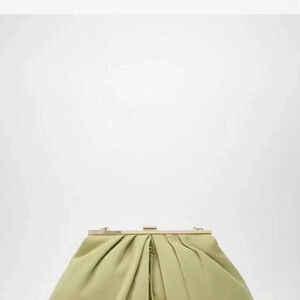 ZARA NEW LEATHER DOUBLE COMPARTMENT PLEATED CROSSBODY BAG green 6740/510