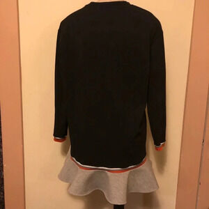 Fashion forward ruffle hem oversized sweater by Zara. Sport inspired style. Navy body with orange gray and white contrast borders. Thick neoprene ruffle hem. Crew neck. Long sleeve. Material tag has been snipped, but I think the sweater is polyester. New without tags!