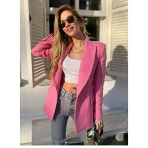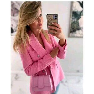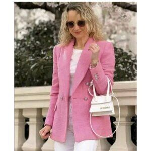 ZARA NEW WOMAN DOUBLE BREASTED TEXTURED WEAVE JACKET PINK 2324/687 XS 17.5" Ptp
