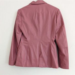 Flattering fit double-breasted blazer. Soft supple faux leather in BEAUTIFUL SUBDUE NUDE PINK. Perfect combination of color in this leather material
