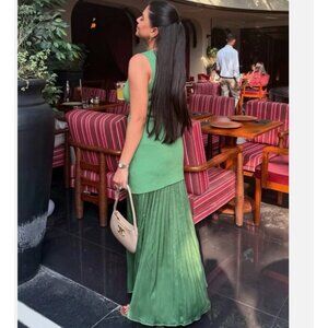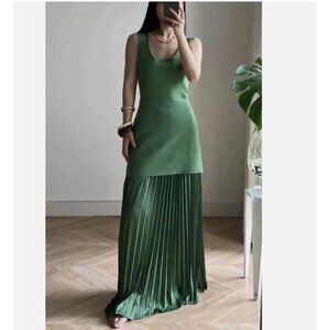 ZARA NEW WOMAN LONG PLEATED KNIT COMBINATION DRESS GREEN 4192/055 S M L