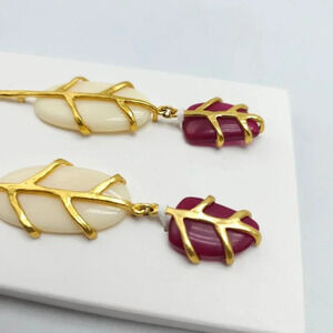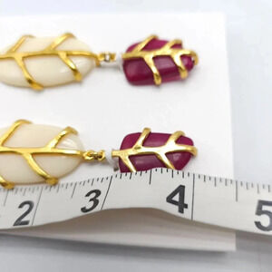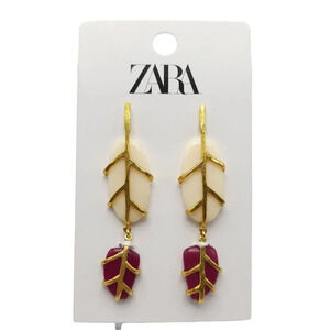 Elevate your style with these stunning Zara earrings. Featuring gold leaf designs with red and white stones, they add sophistication to any outfit.