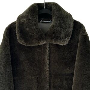ZARA | NWOT FAUX FUR JACKET ZW COLLECTION DARK GREEN KHAKI TEDDY COAT | EXTRA SM