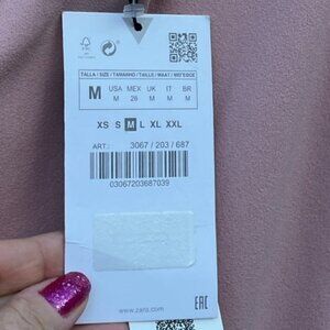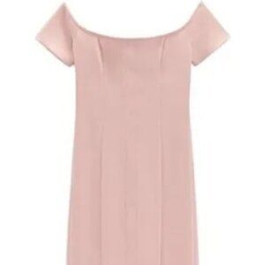 ZARA NWT Baby Light Pink Topstitched Off the Shoulder Bodycon Midi Dress Size M