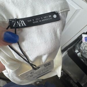 ZARA NWT Cream 100% Cotton Button Up Midi Dress Size Small Side Slits