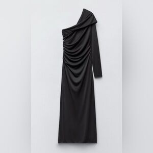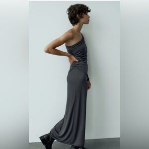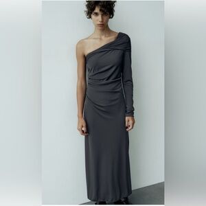 ZARA NWT DRAPED ASYMMETRICAL DRESS SIZE XS | ANTHRACITE GRAY
