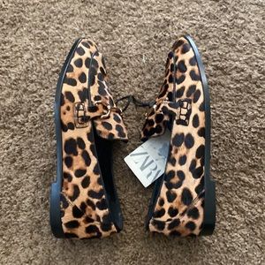 ZARA | NWT Leopard Calf-Skin Loafers | Size: 36 (6) | Color: Brown / Black | Gold Hardware | Beautiful flats for work or causal wear | Bottoms slightly dirty / scuffed from trying on | In perfect condition