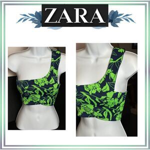 🔹 NEW WITH TAGS 🔹 ZARA One-Shoulder Tropical Theme Summer Midriff Crop Top
