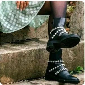 ZARA NWT PEARL STRAPPED LOW HEEL VEGAN LEATHER ANKLE BLACK BOOTS WOMEN'S SZ 6.5