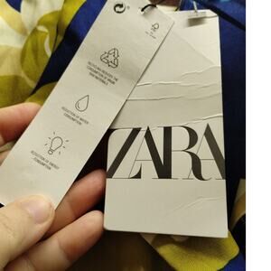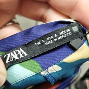 ZARA NWT Size Small Blue & Green Floral Satin Short Sleeve Belted Jumpsuit