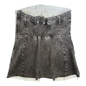 ZARA NWT strapless brown denim bustier top in size medium. Features a structured corset-style fit with a distressed denim finish, stretch back panel for comfort, and modern street-style edge. Perfect for layering or wearing solo with high-waisted jeans or skirts. Trendy Y2K-inspired style, brand new with tags.