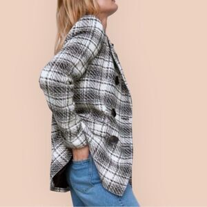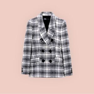 ZARA NWT Textured Plaid double-breasted in Black & Ecru Size L