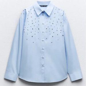 ZARA NWT WOMAN Beaded Poplin SHIRT TOP BLUE Sz: M