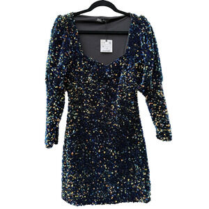 ZARA NWT WOMANS MULTICOLORED SEQUIN VELVET PUFF SLEEVE BODYCON MINI DRESS SZ M