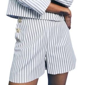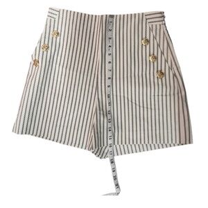 ZARA Nautical Striped High Waisted Gold Metallic Button Bermuda Shorts SZ M NWT