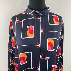 ZARA Navy Blue Orange Geometric Printed Long Sleeve Pullover Blouse Top Size L