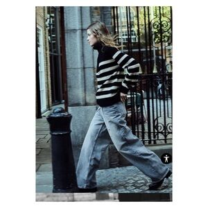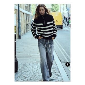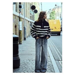 NEW without tags ZARA Blogger Favorite Navy Blue White Striped Quarter Zip Oversized Knit Sweater