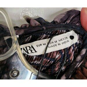 ZARA Navy FLORAL PRINT Dress Smocked Ruffle Hem Balloon Sleeve Size Medium NWT