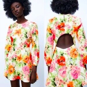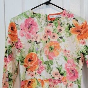 ZARA Naya Floral Print Open Back Cocktail Linen Dress Pink Multicolor Size Large