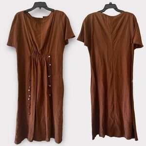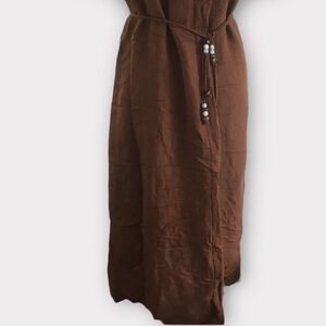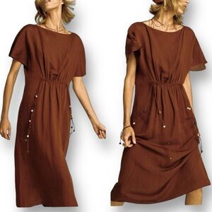 ZARA New Airy Lightweight Linen Beach Bohemian Beaded Tunic Dress Large Brown
