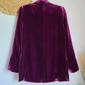 Deep Plum Purple Velvet Fabricaiton. Oversized, Relaxed Fit. Light Shoulder Pads.