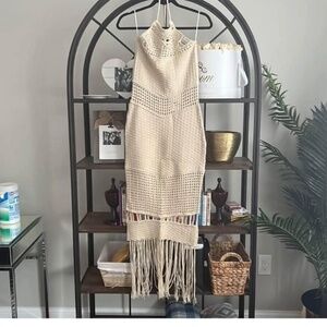 ZARA New W Tags Knit crochet Fringe Midi Dress Size Small