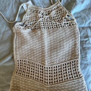 Brand new with tags Zara crochet knit midi dress, size small with dramatic fringe. From spring 2022 catalog— retails at $120. Halter style tie, perfect to wear as a dress or beach/ swim cover up. Absolutely stunning crochet work and a real head turner. Bohemian 70s vibes. Only selling because it’s no longer the right size for me. Take it on your next holiday!
